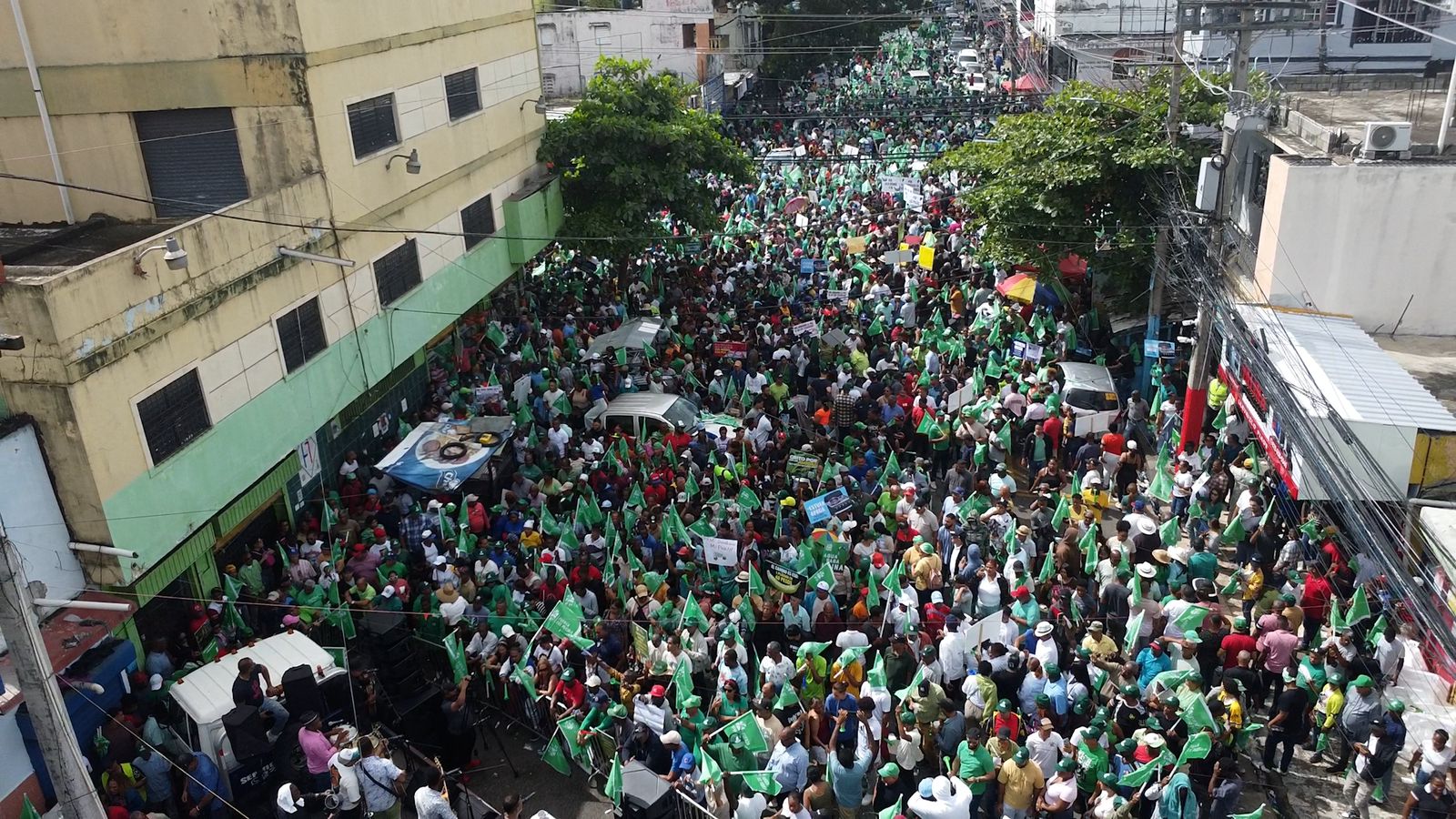 Una gran multitud de personas de varias capas sociales, junto a cientos de militantes de la Fuerza del Pueblo al marcharon este domingo, en reclamo por el alto costo de la vida, junto al líder de esa organización, Lenel Fernandez, iniciando su recorrido en la calle Albert Thomas, en el sector 24 de abril.